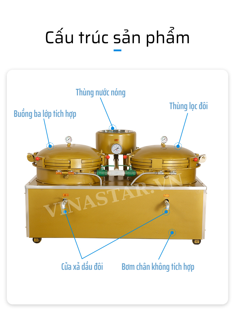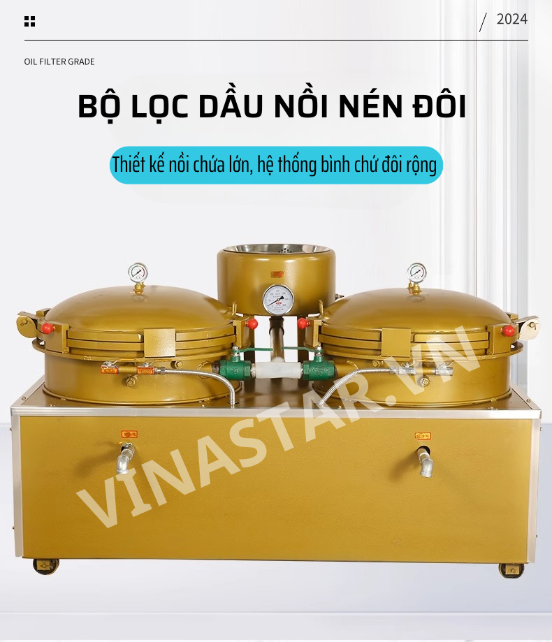 Nồi lọc dầu nén đôi là thiết bị hiện đại, được ứng dụng rộng rãi trong ngành sản xuất dầu ăn. Với cấu tạo đặc biệt và nguyên lý hoạt động hiệu quả, sản phẩm này giúp loại bỏ hoàn toàn các tạp chất, đảm bảo dầu ăn luôn sạch sẽ, tinh khiết và an toàn cho sức khỏe người tiêu dùng.
