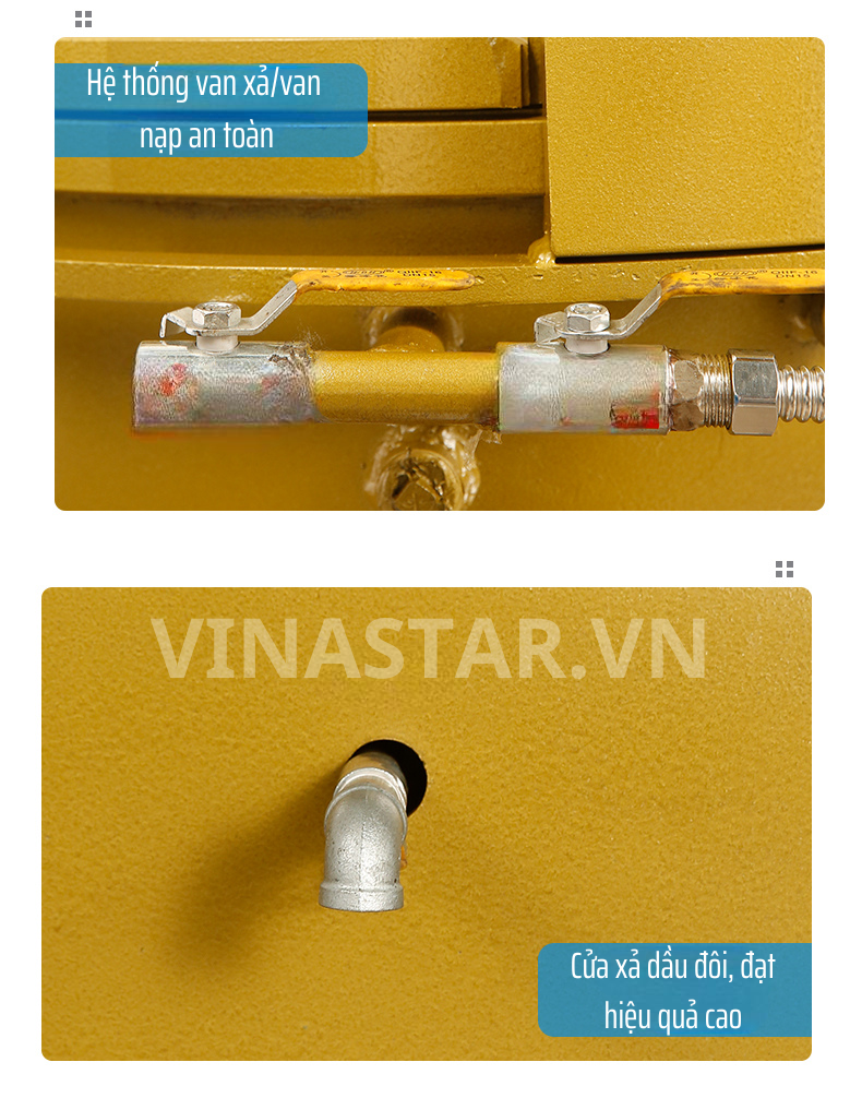 - Hệ thống lọc: Màng lưới lọc kim loại dễ dàng loại bỏ chất thừa lại cho dầu độ tinh khiết cao nhất.