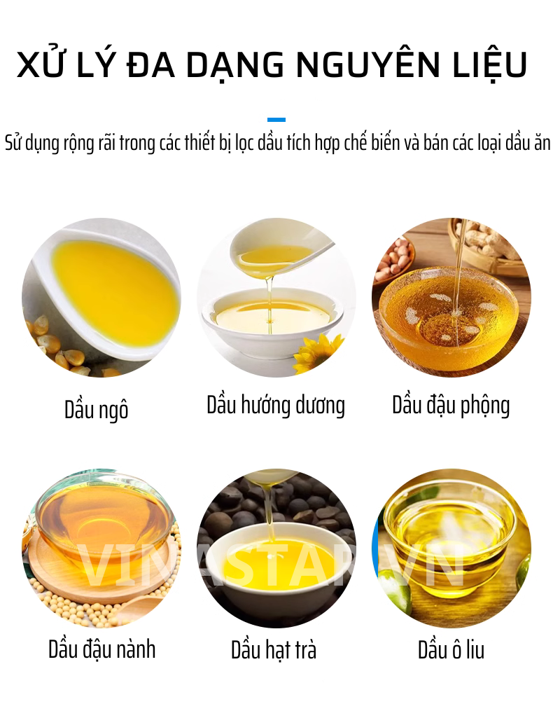 - Sản xuất dầu ăn gia dụng: Dùng để lọc dầu ăn từ các loại hạt, quả như đậu nành, lạc, mè...