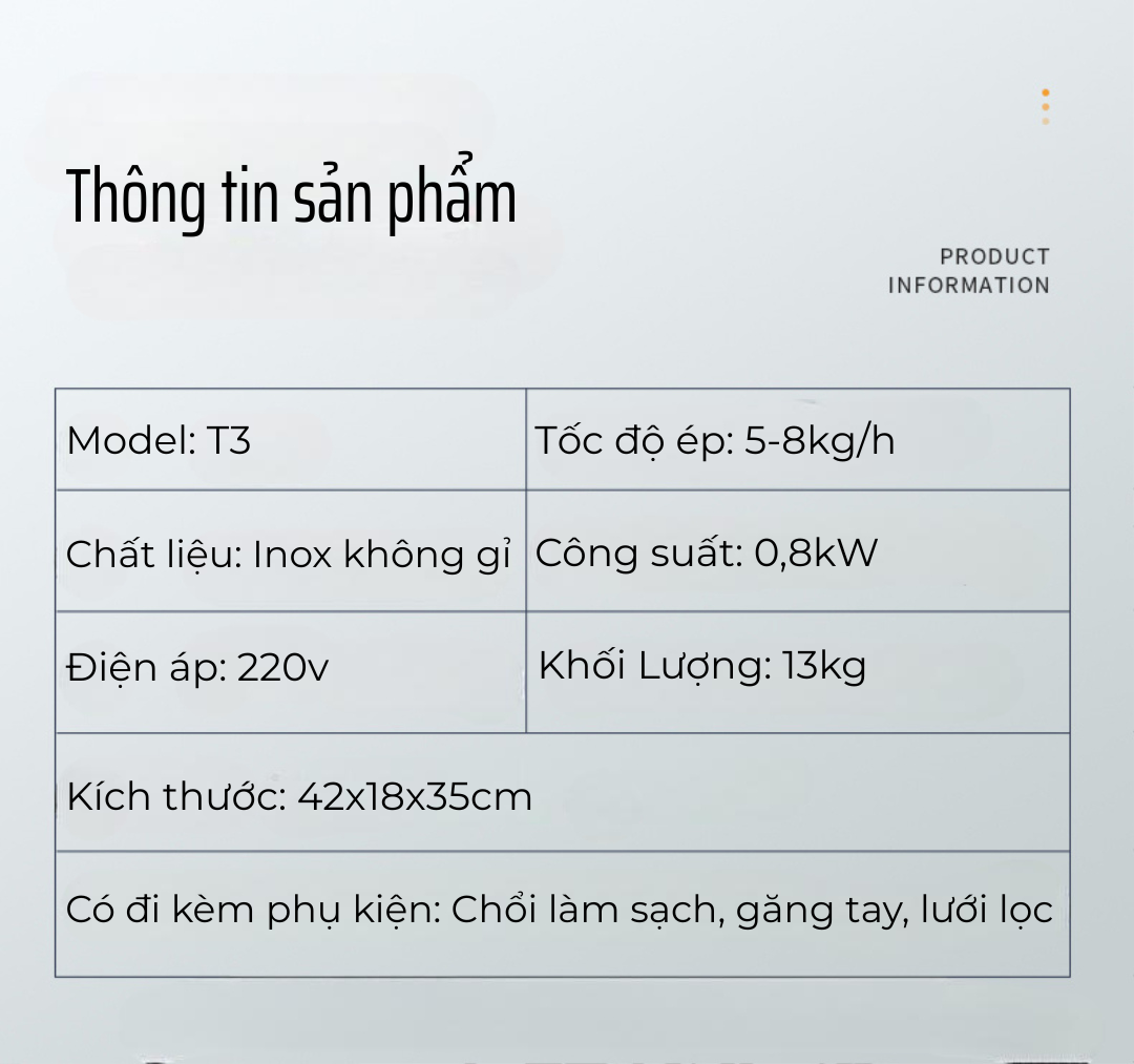 Máy ép dầu TH-T3 không chỉ đơn thuần là một thiết bị gia dụng – nó là biểu tượng cho phong cách sống hiện đại, biết chọn lọc và chủ động trong việc chăm sóc sức khỏe. Với khả năng ép kiệt dầu đến 99%, công suất mạnh mẽ, độ bền cao và tính năng vận hành thông minh, TH-T3 giúp bạn dễ dàng sở hữu những chai dầu vàng óng, nguyên chất ngay tại nhà.