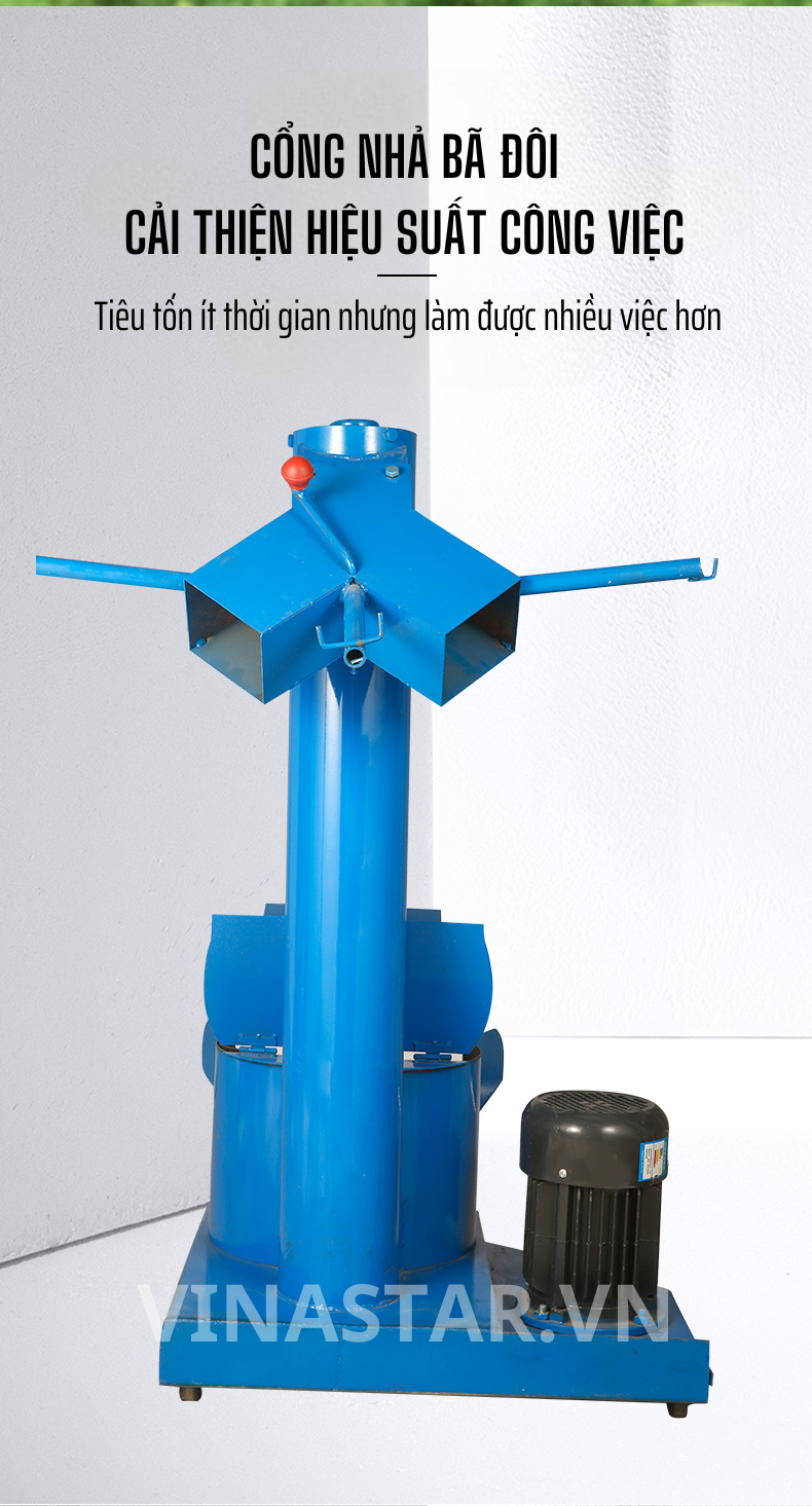 - Cấu trúc cửa xả đôi: Thiết kế độc đáo với 2 cửa xả lớn giúp quá trình xả bã diễn ra nhanh chóng, liên tục, hạn chế tối đa thời gian chết của máy, tăng năng suất làm việc.