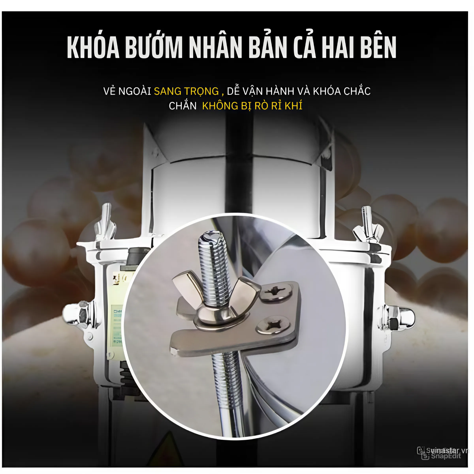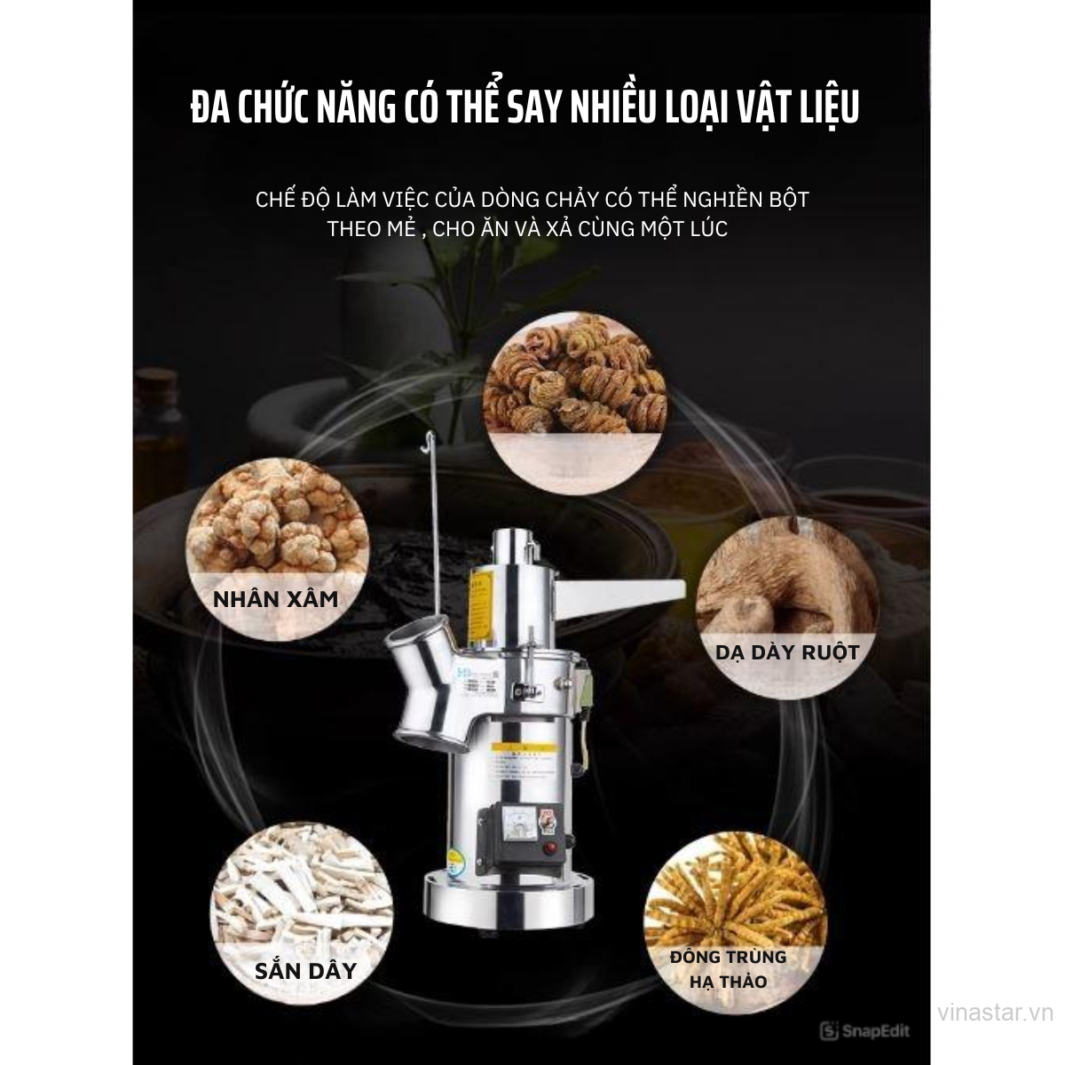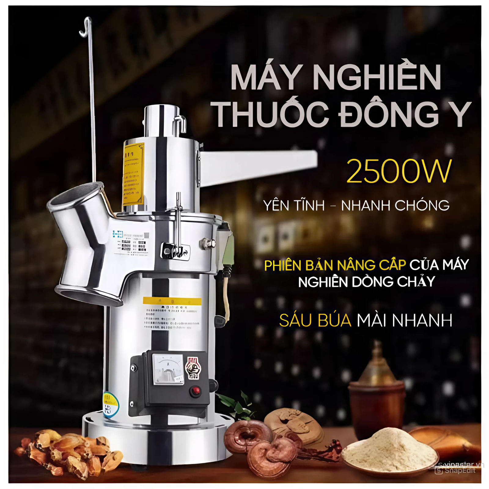 - Công suất lớn: 2500W giúp máy hoạt động mạnh mẽ, nghiền nhanh các loại dược liệu cứng.