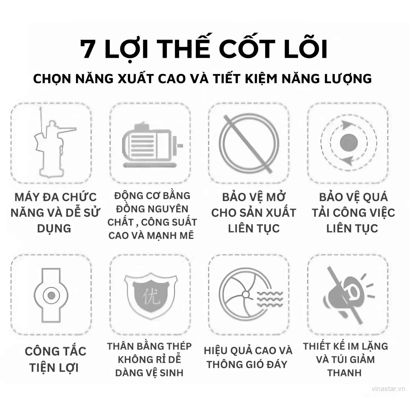 - Đảm bảo vệ sinh: Thân máy bằng inox dễ dàng vệ sinh, đảm bảo an toàn thực phẩm.