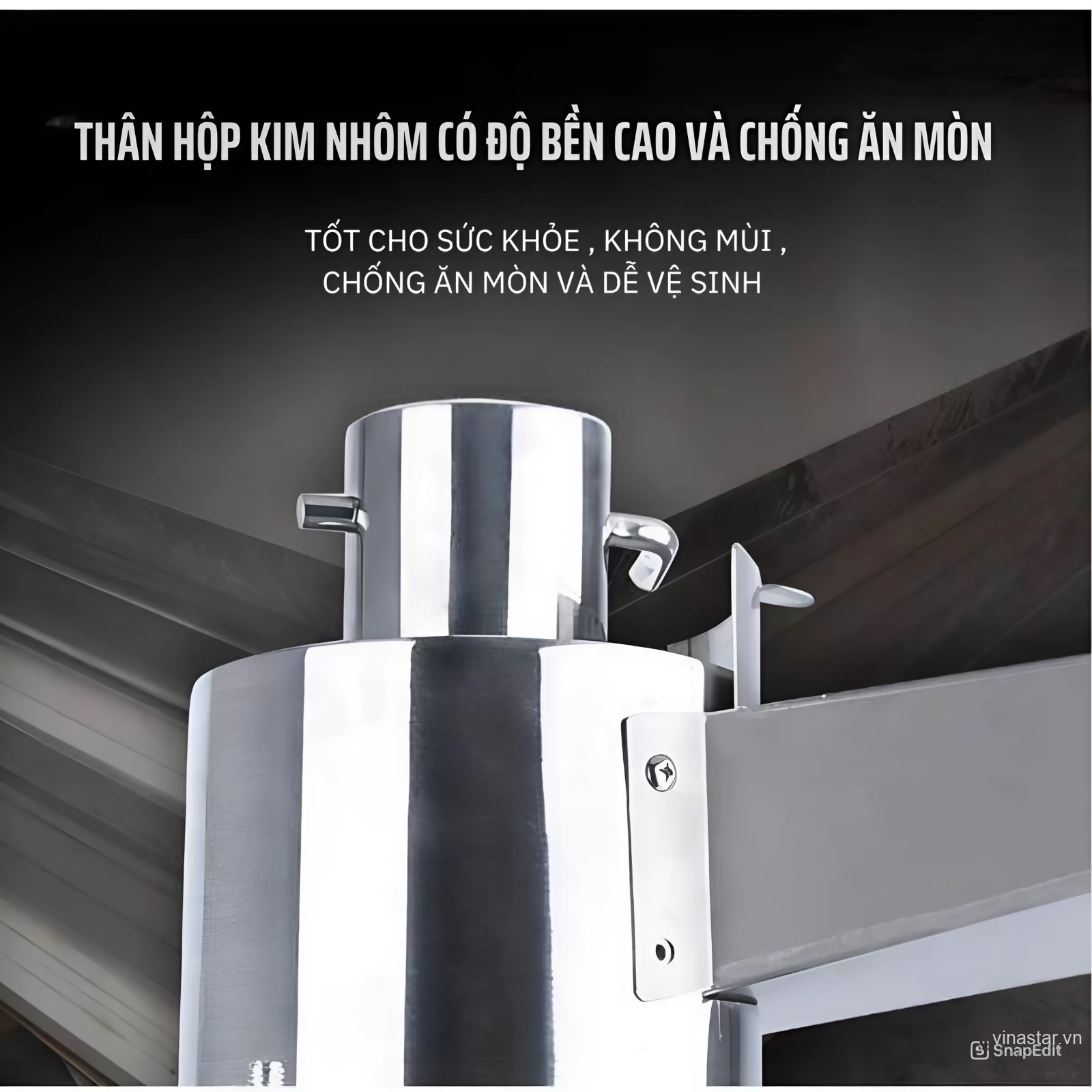- Vật liệu bền bỉ: Thân máy làm bằng inox cao cấp, đảm bảo vệ sinh an toàn thực phẩm.