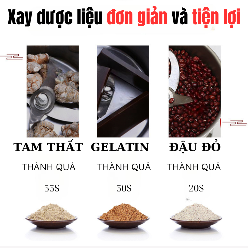 - Công suất mạnh mẽ: Với công suất lớn, máy xay nghiền nhuyễn các loại dược liệu cứng, khô một cách dễ dàng.